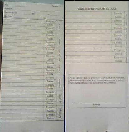 TARJETAS SEMANALES IZQUIERDAS PARA RELOJ DE CHAROLA O SIDE PRINTER.