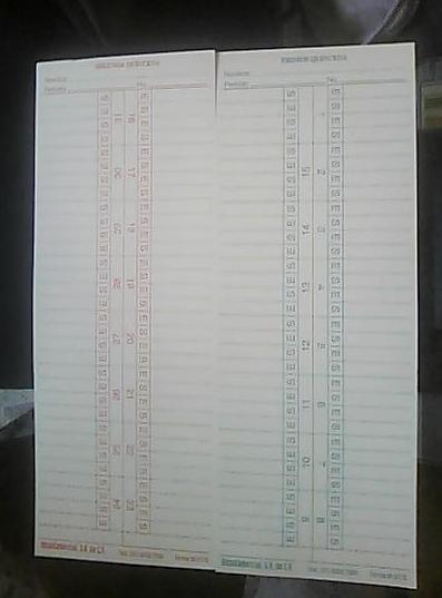 TARJETAS PARA RELOJ CHECADOR QUINCENAL